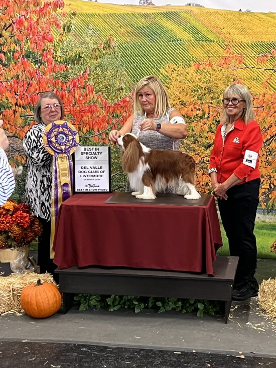 Two weeks later Marian judged the Bay Area CKCS Club's AKC Annual National Specialty and found her Best of Breed in GCHS Ivyline Michelangelo