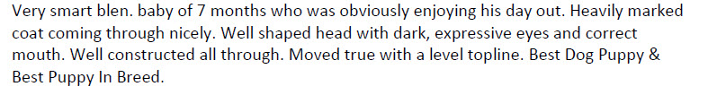 1st Minor Puppy UK Toy Championship Show judged by Lesley Kilcoyne ![]() 1st Minor Puppy and Best Puppy Dog Birmingham Championship Show judged by Becky Jaramillo ![]() 1st Minor Puppy and Best Puppy Dog Southern Counties Championship Show judged by Tim Ball