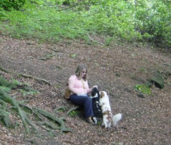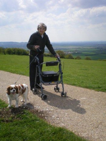 Teasle with owner Richard's mother walking on Dunstable Downs |