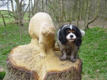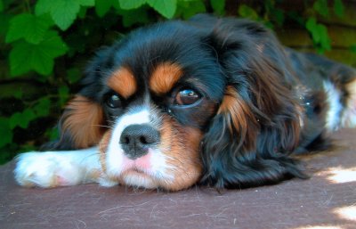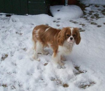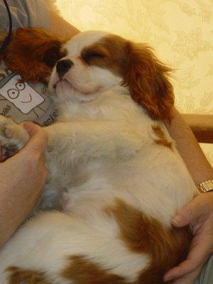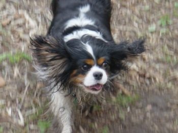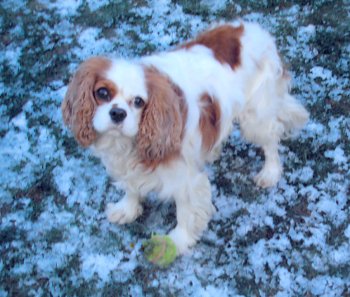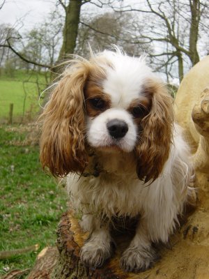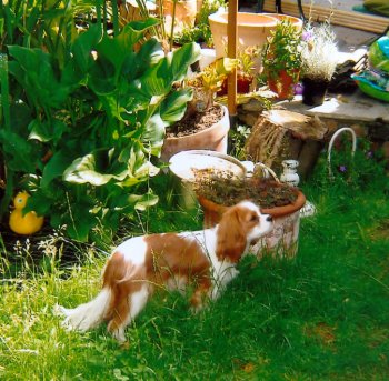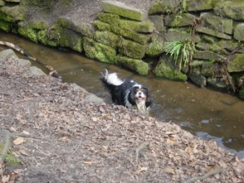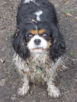 Arthur and Billy are both real outdoor boys, Arthur in a muddy stream, rolling in leaves/dust/grass (whatever is available), then posing for his show photo, then running around as usual. Billy (Peanut) is the most affectionate Cavalier I have ever come across. |
