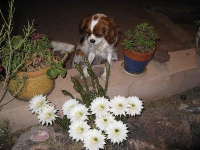 'Melody' checking out the night blooming cactus, in Arizona |