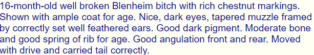 1st Junior Bitch Southern CKCS Club Championship Show judged by Andy Shone