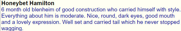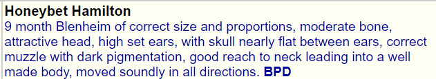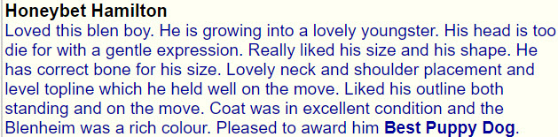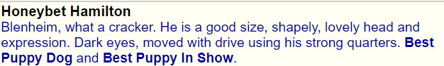 1st Puppy, Best Puppy Dog and Reserve Best Puppy in Show Northern CKCS Society Championship Show judged by Elaine Berwick